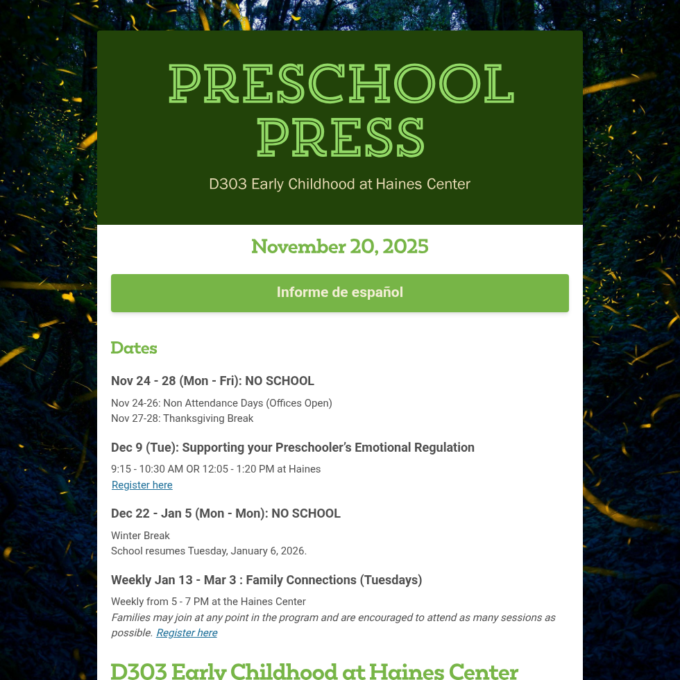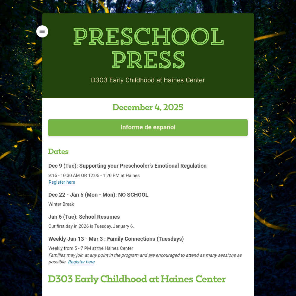 The D303 Community Preschool has openings for the 2025-2026 school year.