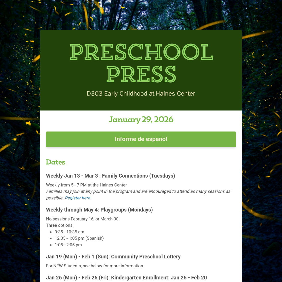 The D303 Preschool Program Lottery is open from January 19 - February 1, 2026. Click here to learn more.
