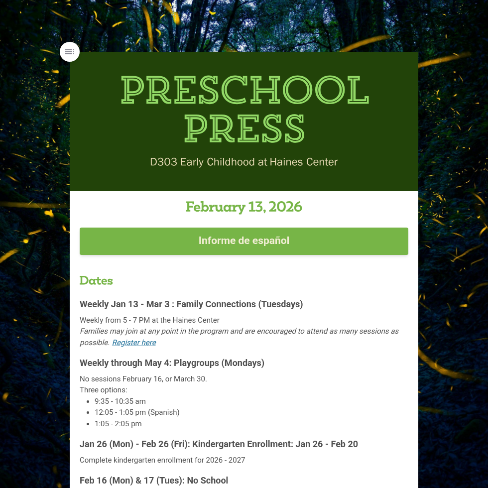 If you are interested in enrolling your child for the remainder of the 25-26 school year please contact the Early Childhood Center.